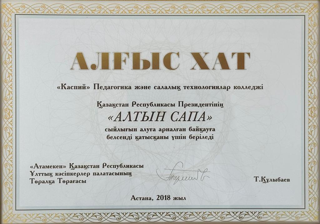 “Каспий” жоғары педагогика және салалық технологиялар колледжі ЖШС